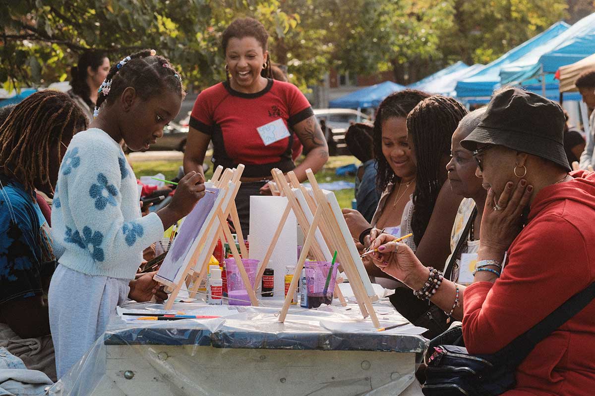 A multi-generational gathering of Montréal’s English-speaking Black community to share stories, connect, and create artwork together—hosted outdoors alongside the Côte des Neiges Intercultural Festival.